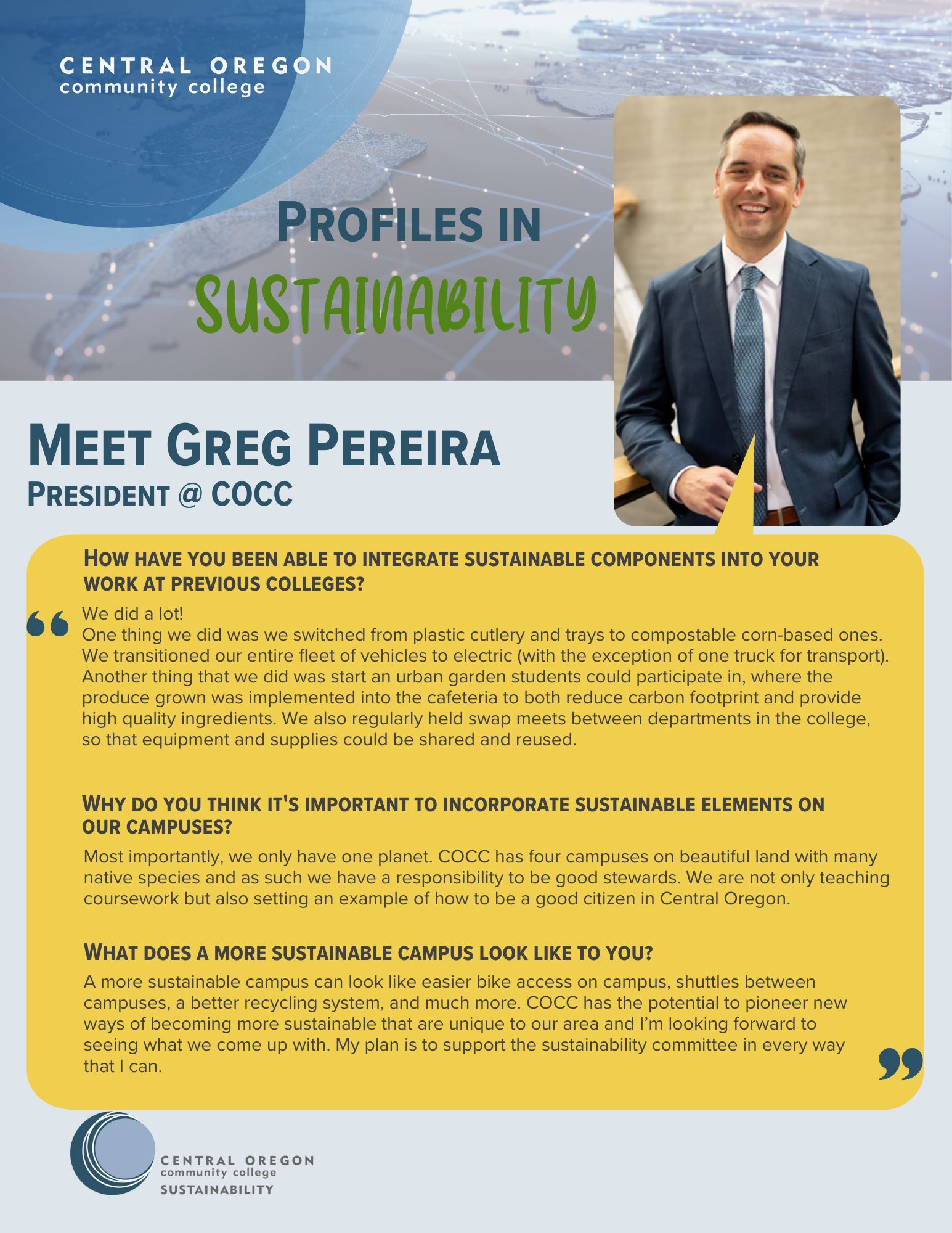Megan's dedication to sustability is woven into her approach to healthcare administration and education. She has a commitment to integrating environmental stewartship and social responsibility as pillars of the nursing profession and education at COCC.