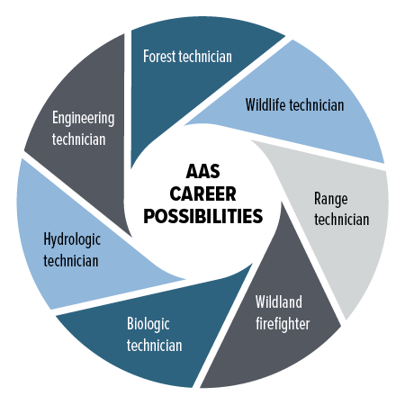 COCC Forestry graduates earn an Associate of Applied Science (AAS) degree and are well-suited for employment in both private industry and public land management agencies. This degree prepares students for immediate employment in forestry-related industries, including but not limited to: forest or wildlife technician, range technician, wildland firefighter, biologic technician, hydrologic technician, and engineering technician.