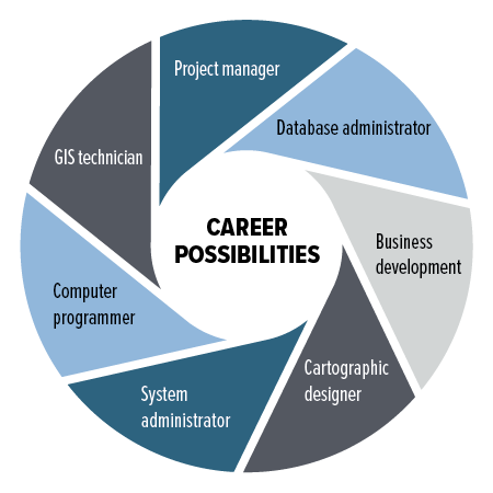 With a certificate or degree in GIS, students are prepared to launch careers in a wide variety of fields. Graduates work in retail and commercial businesses, natural resources, education, federal/state/local governments, banking and insurance, internet, publishing, and real estate.